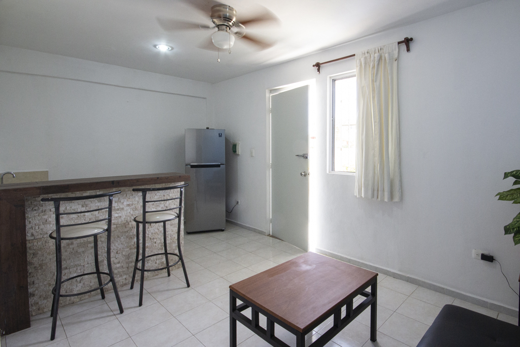 Renta departamento de una recámara nuevos cerca del Hospital Horan y Av. Itzaes y de la Escuela de Medicina UADY, cuenta con cama matrimonial, closet, amaqueros, ventilador, baño completo, aire acondicionados, cocineta con parrilla eléctrica de 2 hornillas y refrigerador