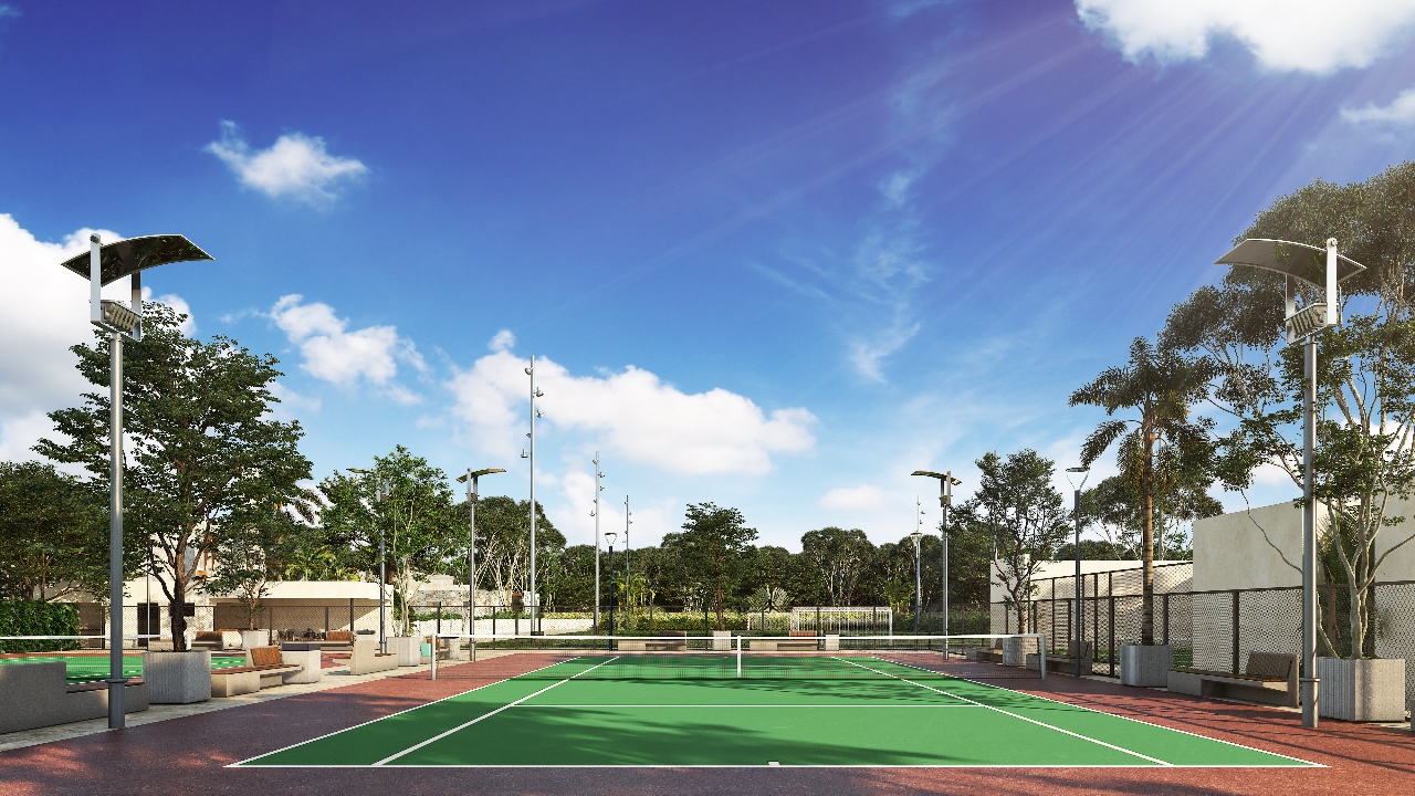 Áreas deportivas como cancha de pádel, tenis, futbol.