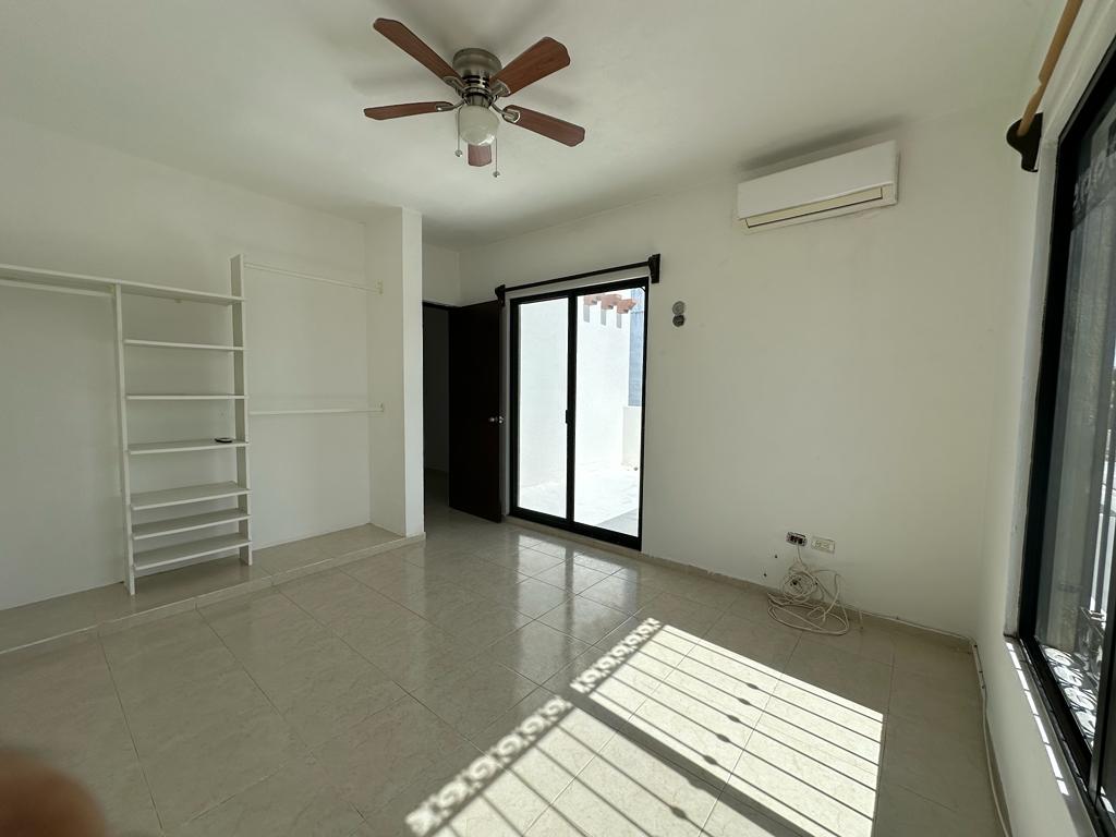 Planta Alta: Reacamara principal con closet abierto, aire acondicionado, ventilador, balcón.