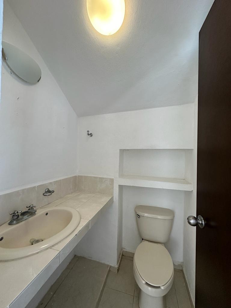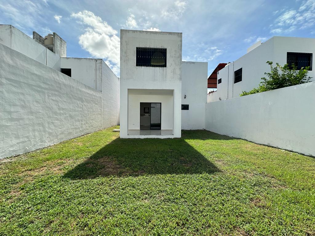 medio baño de visitas, pasillo de servicio con área de lavado,terraza techada, amplio pattio con pasto.
