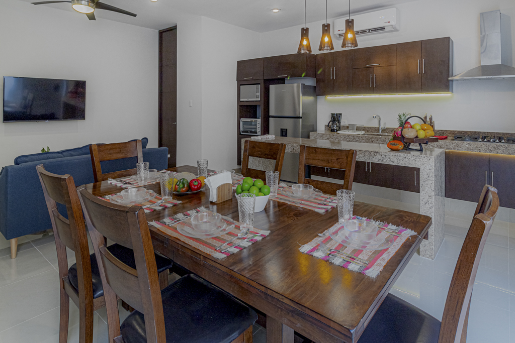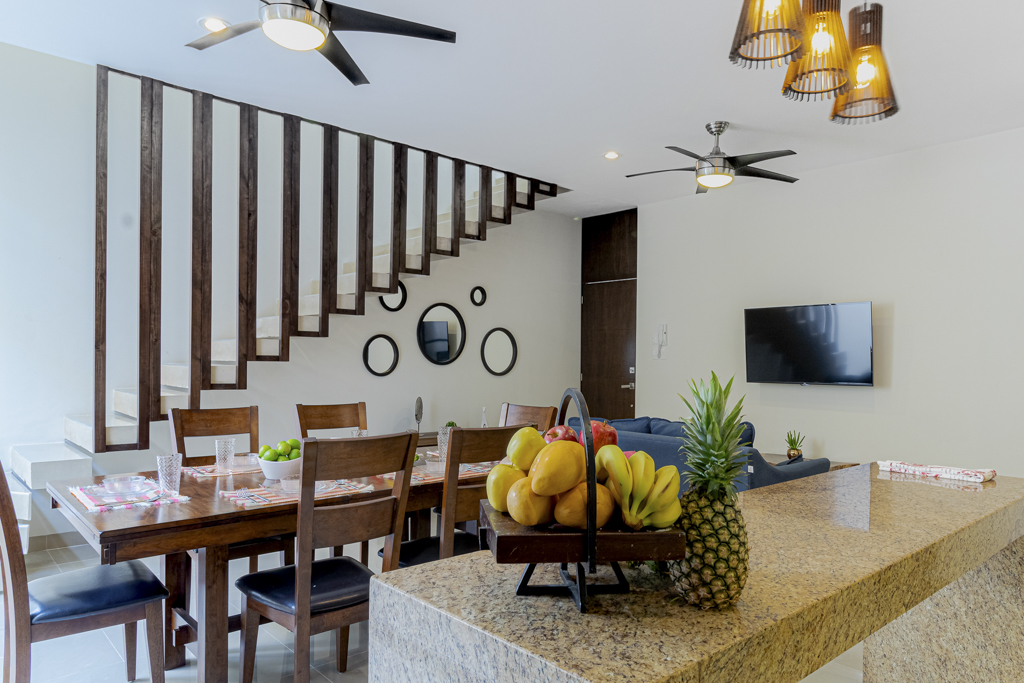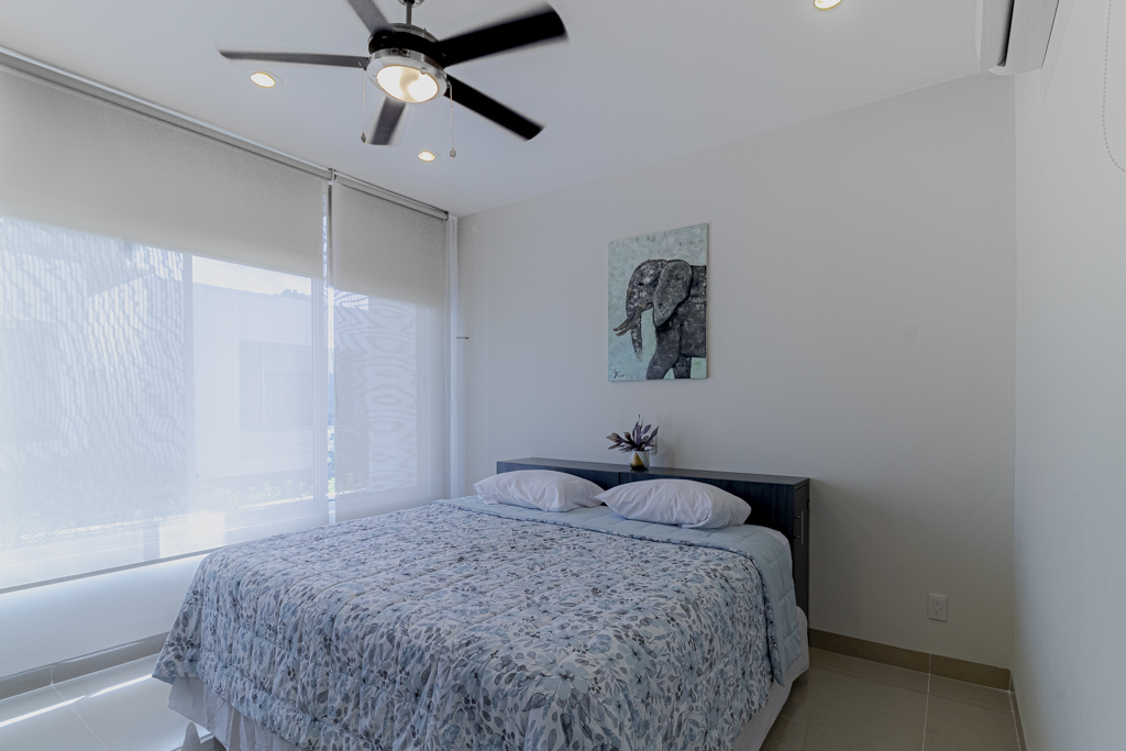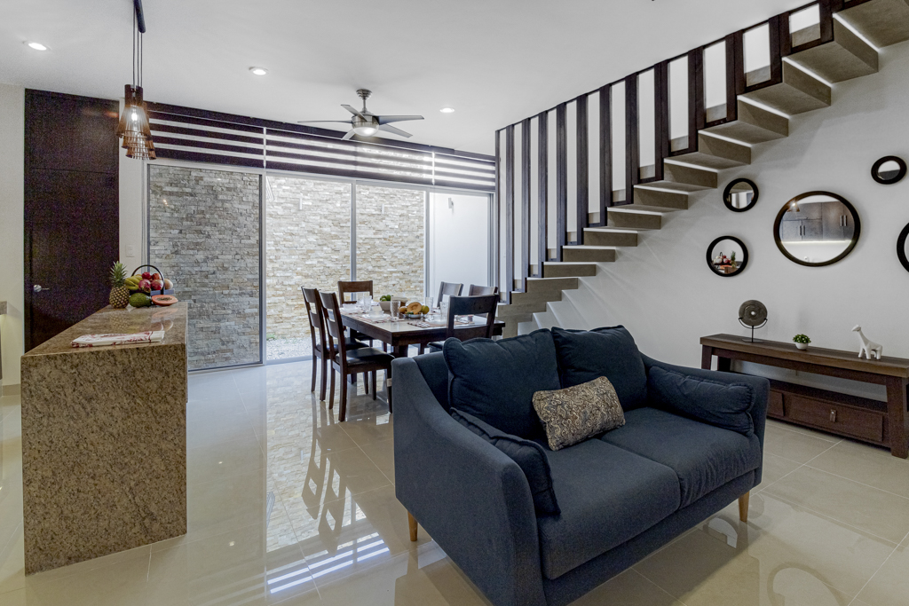 Exclusivo Townhouse en renta de 2 habitaciones, cómodamente amueblado con closet y baño independientes, equipado con closet en madera, aire acondicionado mini split y ventiladores, cochera techada para dos autos, en conjunto privado, ubicado en Col Campestre, al norte de la ciudad de Mérida Yucatán.