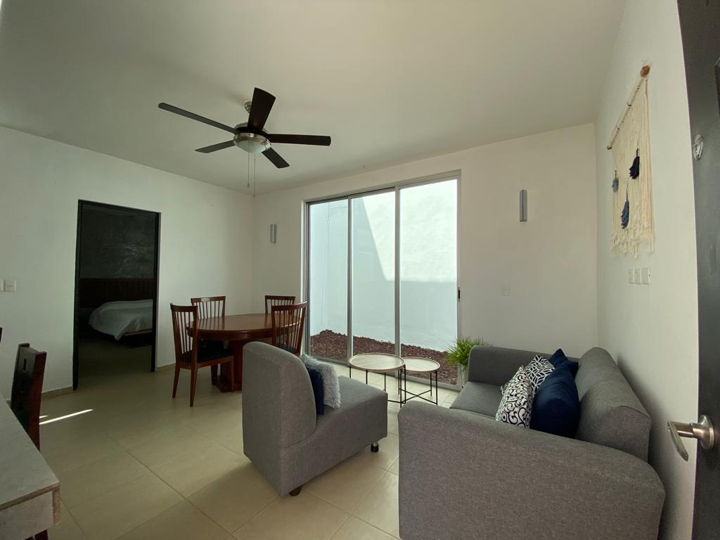 En renta departamento amueblado en edificio cerrado, al norte de la ciudad de Mérida.